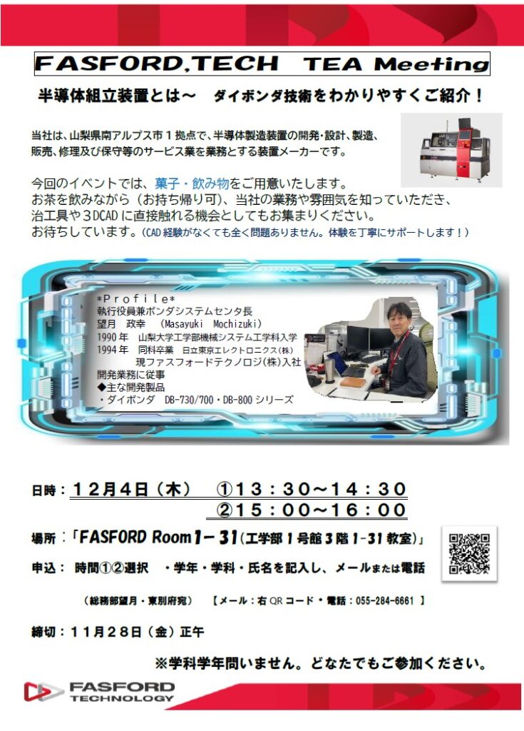 静岡大学浜松キャンパス 工学部1号館3階1-31教室「FASFORDROOM1-31」にて、当社社員によるイベントを実施いたします。